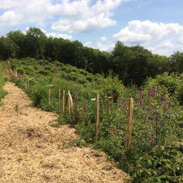 We coppice our own woodland which has provided us with a supply of logs and wood for our green woodworking facility. We make our own fence posts from chestnut which is a great wood for putting in the ground as its sap has preservative qualities. After coppicing the number of plant species increases dramatically. The photo shows the new growth one year after coppicing.